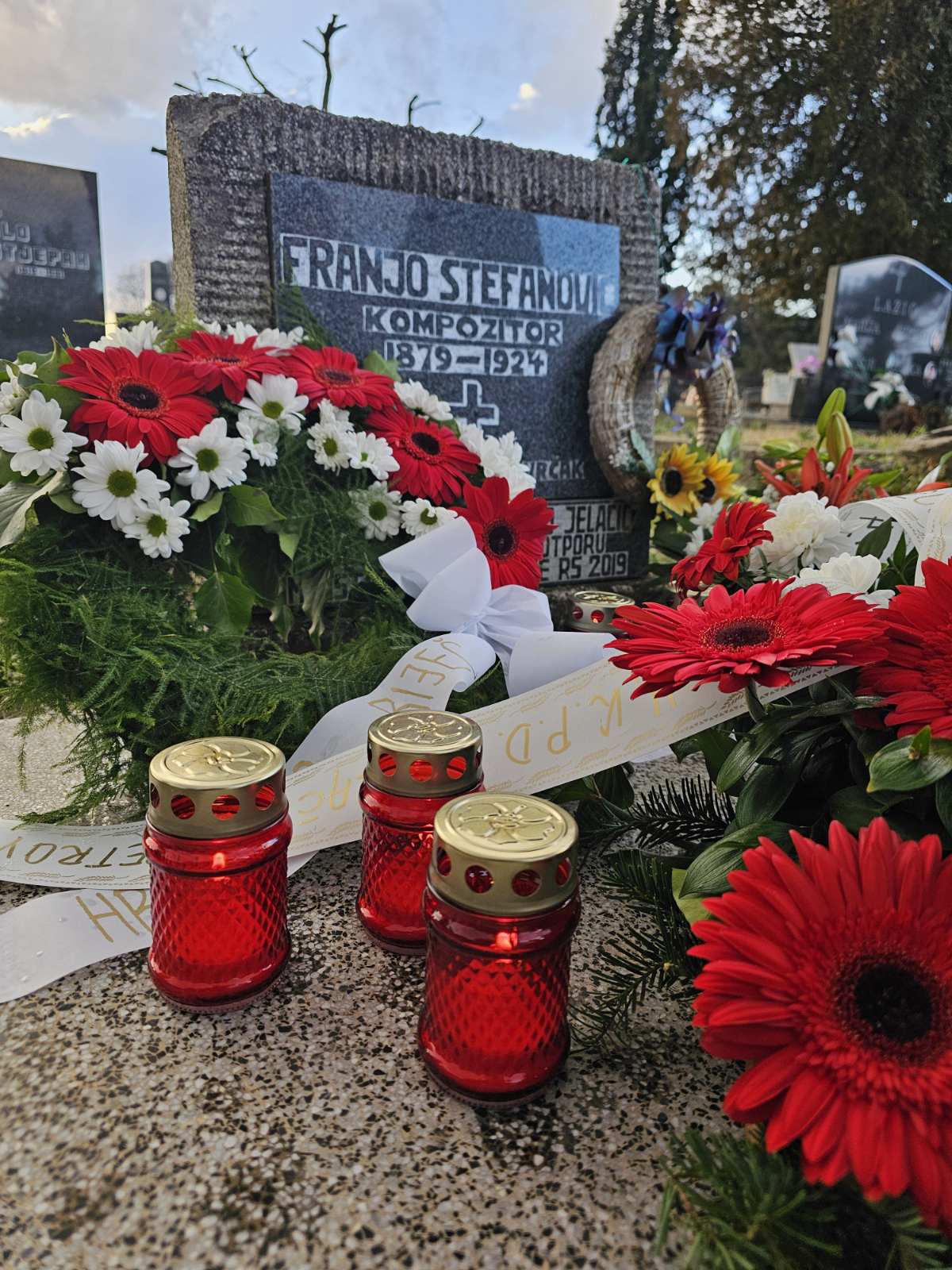Polaganjem cvijeća i svijeća na grob poznatog hrvatskog skladatelja Franje Štefanovića na Trandžamentskom groblju u Petrovaradinu dan uoči stote obljetnice njegove smrti u četvrtak 25. siječnja 2024. godine započelo je obilježavanje ovog značajnog jubileja. Vijence su od predstavnika hrvatskih manjinskih institucija položili elektor Mirko Turšić u ime Hrvatskog nacionalnog vijeća, Branimir Kopilović, uposlenik Zavoda za kulturu vojvođanskih Hrvata te Davor Bašić Palković, novinar NIU Hrvatska riječ. Polaganju cvijeća i svijeća je nazočio i zamjenik pokrajinske tajnice za kulturu, javno informiranje i odnose s vjerskim zajednicama Goran Kaurić.