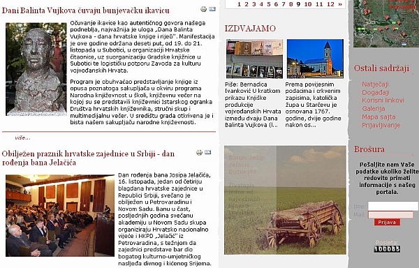 Podsjećanja radi reći ćemo da je službeno predstavljanje portala održano u subotu, 16. svibnja 2009., na prvom radnom susretu hrvatskih udruga kulture u Vojvodini. Samo deset dana nakon toga stranice Zavoda imale su tisuću posjetitelja. To je bio nedvojbeni pokazatelj da je za web portalom kulture Hrvata u Vojvodini bilo velike potrebe, i s druge strane, da su stranice primjereno odgovorile na te potrebe. Na temelju takvih spoznaja i pokazatelja još smo odlučnije i urednički promišljenije pristupili stalnom osvježavanju naših stranica novim sadržajima.