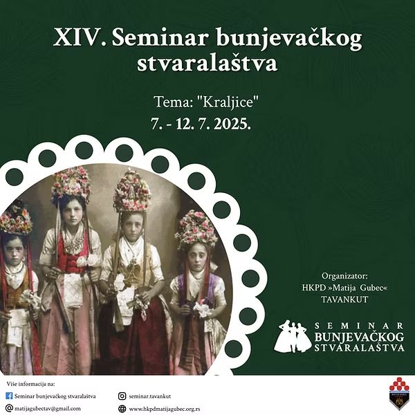 Seminar bunjevačkog stvaralaštva, koji se organizira četrnaesti put, bit će održan od 7 do 12. srpnja (jula) 2025. godine u Tavankutu u organizaciji mjesnog HKPD-a Matija Gubec. Tema ovogodišnjeg seminara su Kraljice. Seminar obuhvaća teme plesa, tamburaške tradicijske melodije i tradicijske vještine – izrada predmeta od slame. Prijavljeni polaznici se opredjeljuju za jedno od ova četiri područja.