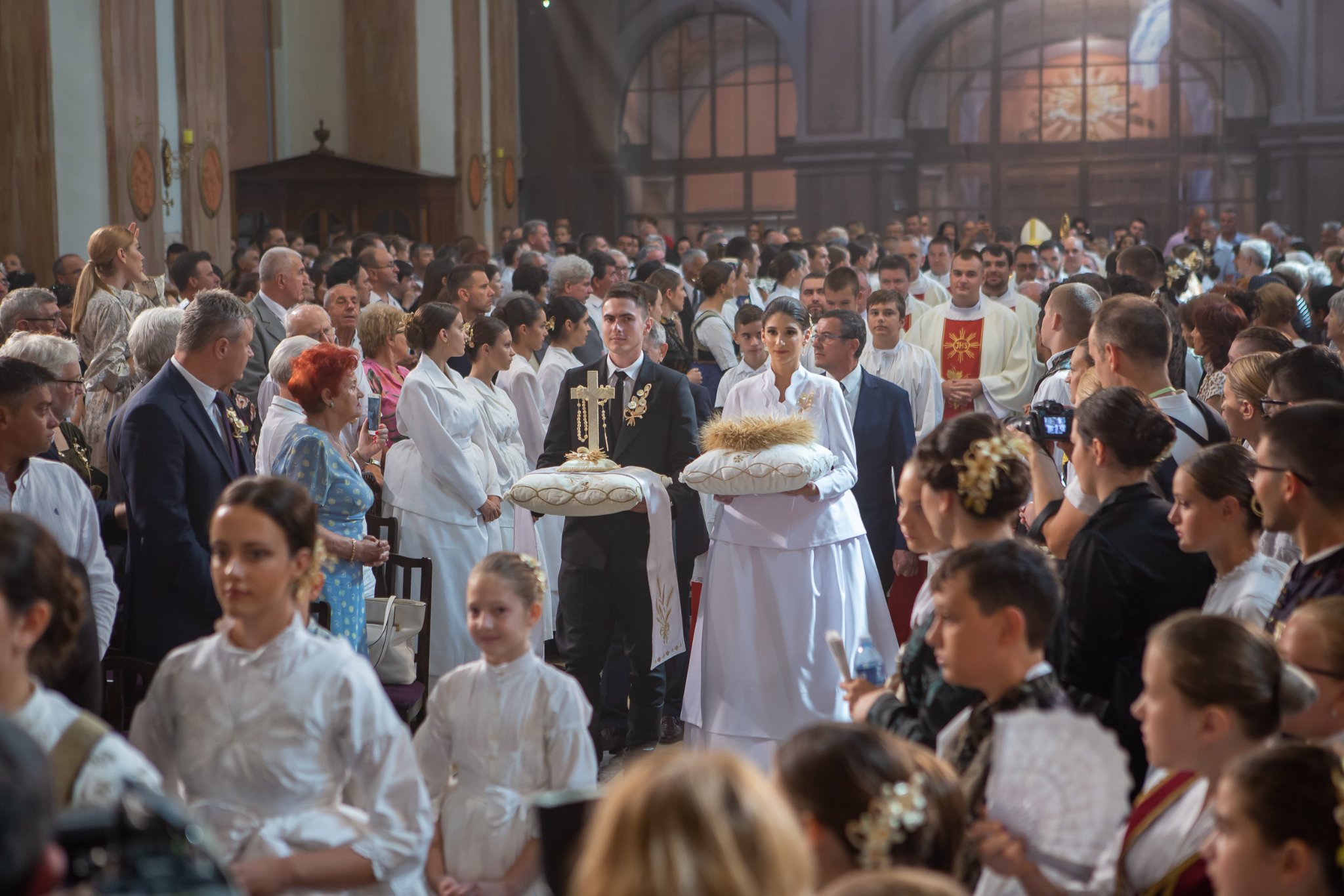 Pod misom je pjevao Katedralni zbor Albe Vidaković na čelu sa zborovođom i orguljašem mo. Miroslavom Stantićem, koji je uz soliste tijekom dva dana pridonio svečanosti slavlja. Bandaš i bandašica su čitali misna čitanja, a mladi u nošnji su na svečani način prinijeli darove na oltar zahvalnosti.