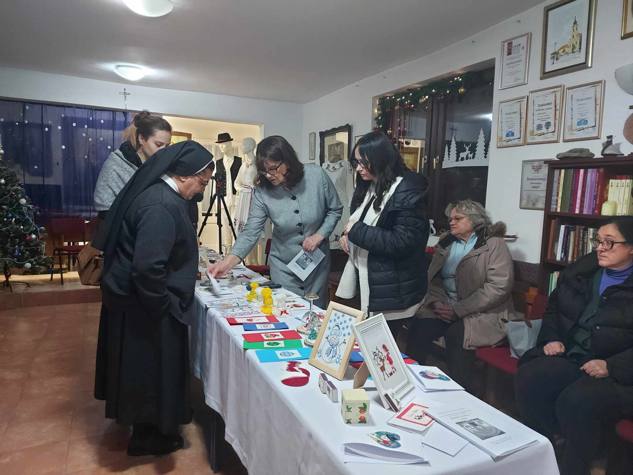 ‚‚Kulturnim programom poručili smo prisutnima da nas Božić zove na mir i tišinu. Poziva nas da njegujemo i čuvamo mir, ali ne samo za sebe nego da ga poklanjamo i drugima. Nastojali smo taj mir prenijeti na okupljene župljane, jer kreativni rad upravo i jeste način rada koji zahtijeva ustrajnost, mir i veliko strpljenje. Tehnike su različite kao i prethodnih godina, ali ove godine vez je u prvom planu. Dominiraju religiozni motivi, ali ima i onih s likom Snjegovića i Djeda Mraza gdje se vidi dječji duh", izjavila je voditeljica kreativne sekcije Veronika Živanović.