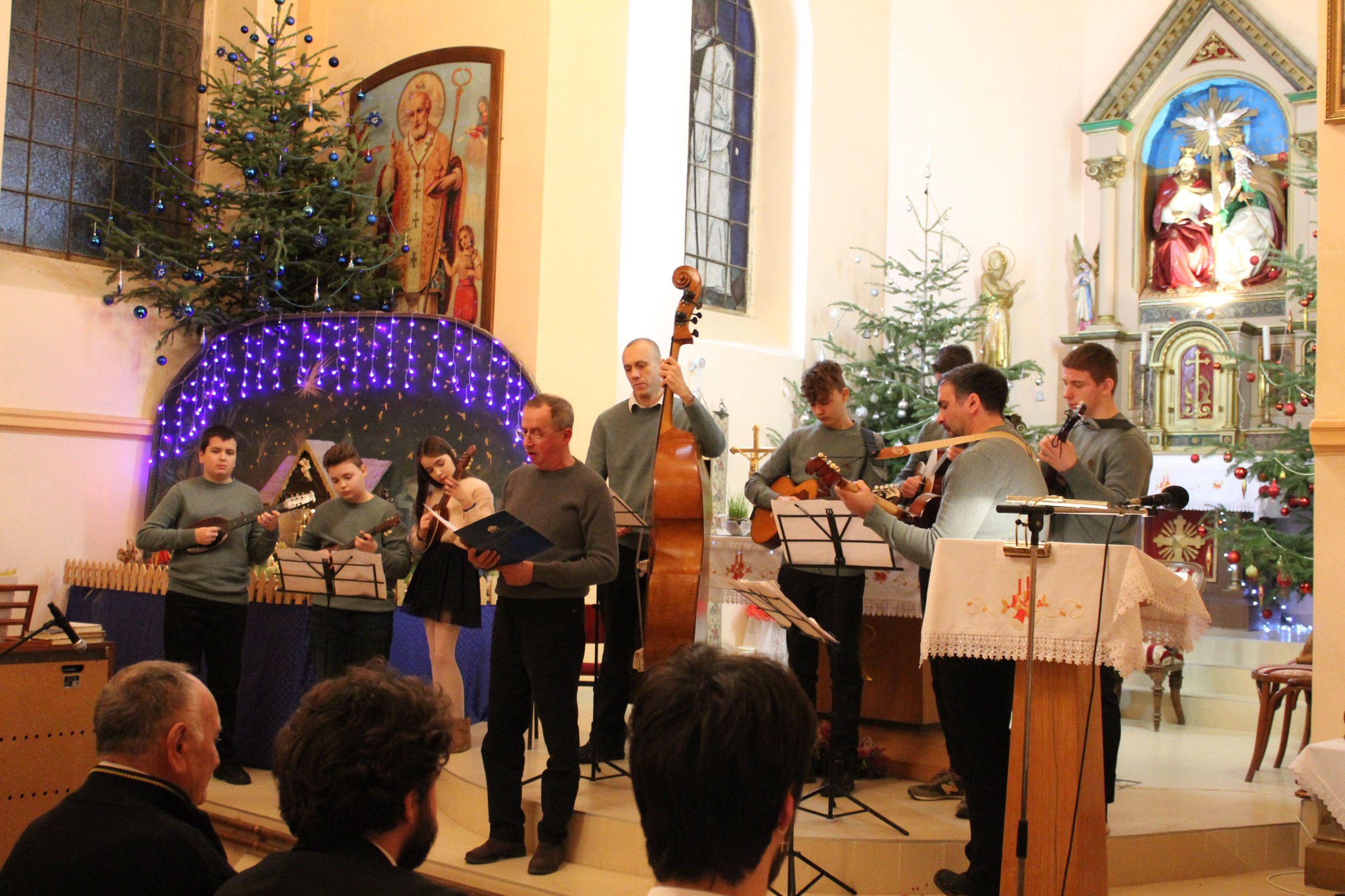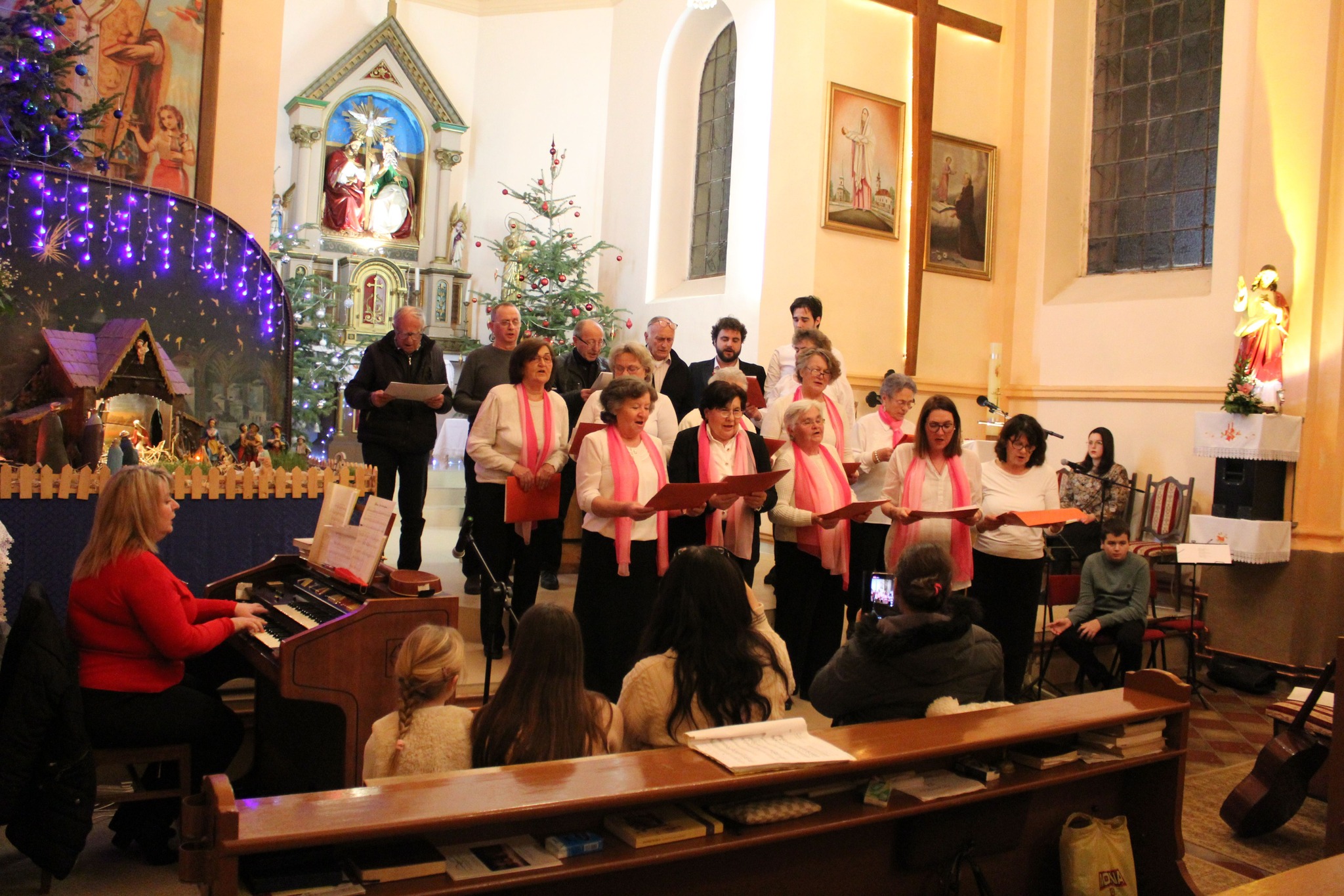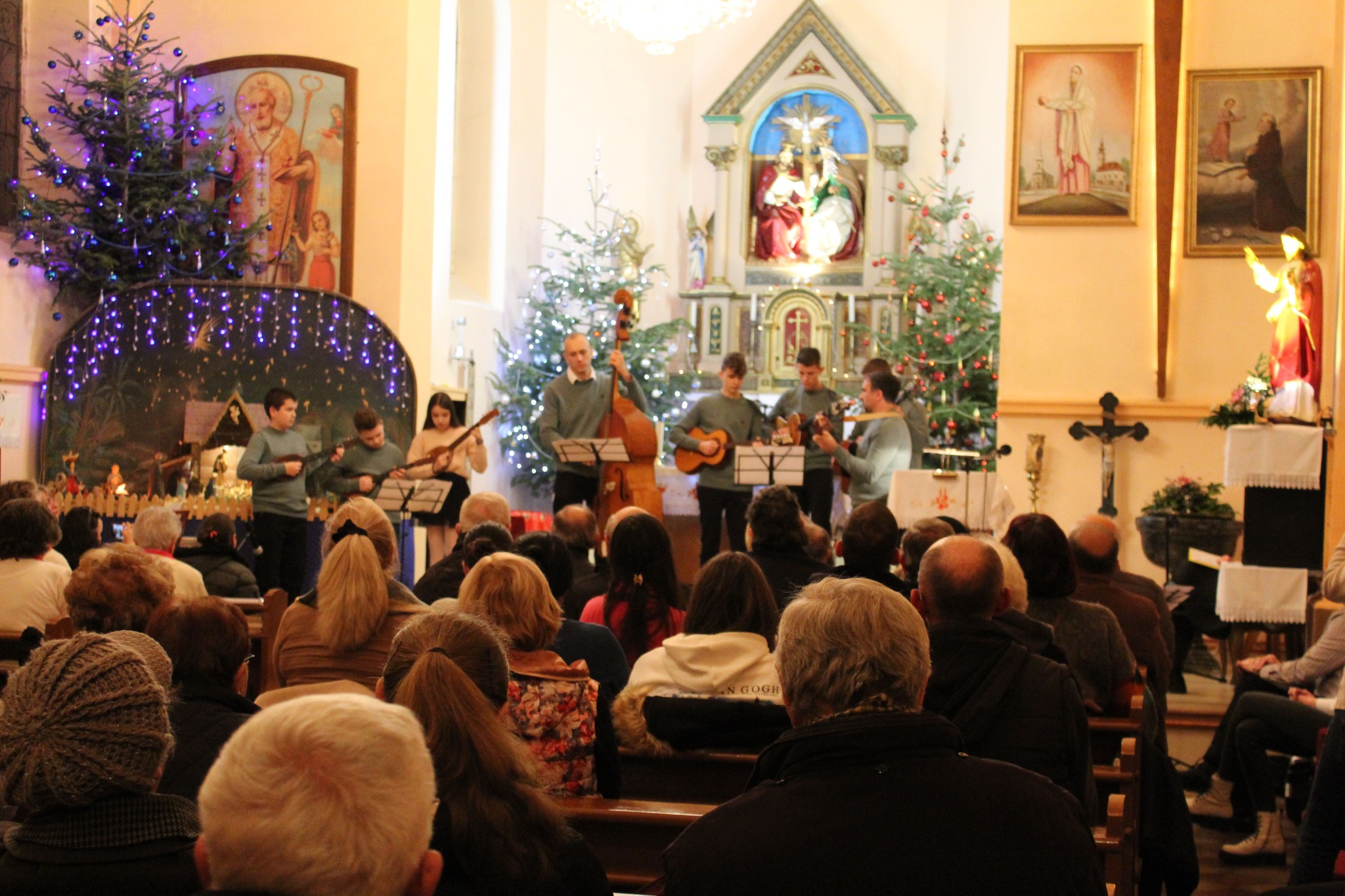 Program su otvorili najmlađi sudionici, blizanci Marija i Đorđe Božanić i Marina Beljan. Nastupio je zbor župe Presvetog Trojstva pod vodstvom Zoje Satmari, ali i uz solisticu Janju Šćulac. Najstarija solistica Katila Rigel je nastupila u tamburaškoj pratnji Miloša Prodanovića. Nakon duljeg vremena nastupio je i ogranak glazbene sekcije Fischer pod nazivom Momci s Orešca koji sada čine Josip Crljen, Darko Kendrić i Filip Brzić. Na koncertu su se čule i riječi na slovačkom, a riječ je o pjesmi koju su uz numeru Bijeli Božić izveli Mihaela i Željko Molnar. Posljednji su nastupili mladi tamburaši pod vodstvom Miloša Prodanovića kojima se pridružio i vokalni solist Petar Štampar.