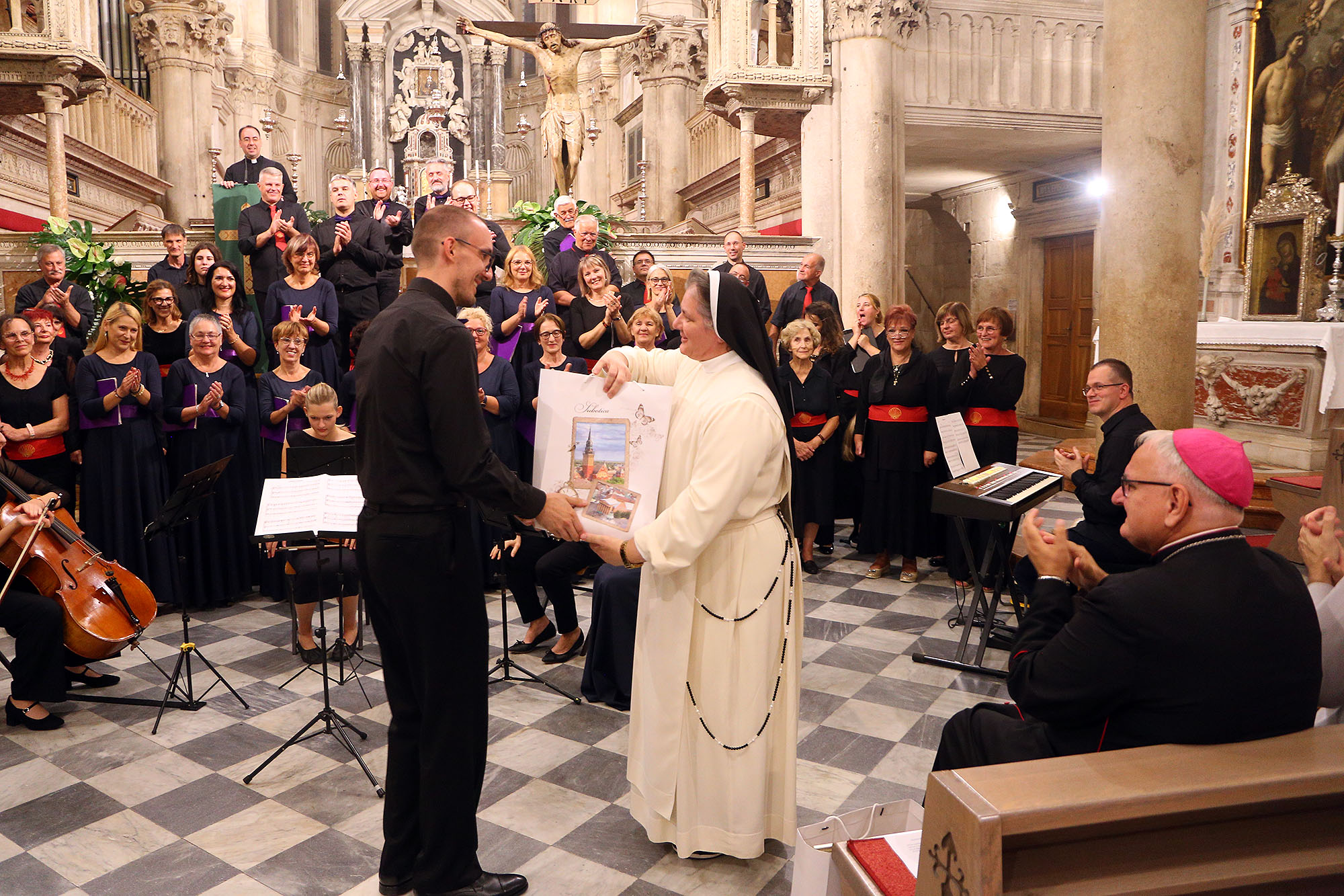Nakon mise uslijedio je zajednički koncert subotičkog zbora i Mješovitog katedralnog zbora iz Šibenika, pod ravnanjem Jelene Mikulandre, na kojem su izvedena djela klasične i duhovne glazbe, uključujući Händelovu Aleluju i himan Mihovile sveti. Glazbeni program dodatno su obogatili instrumentalisti.