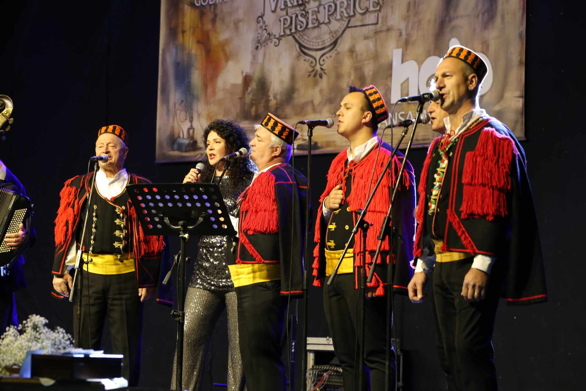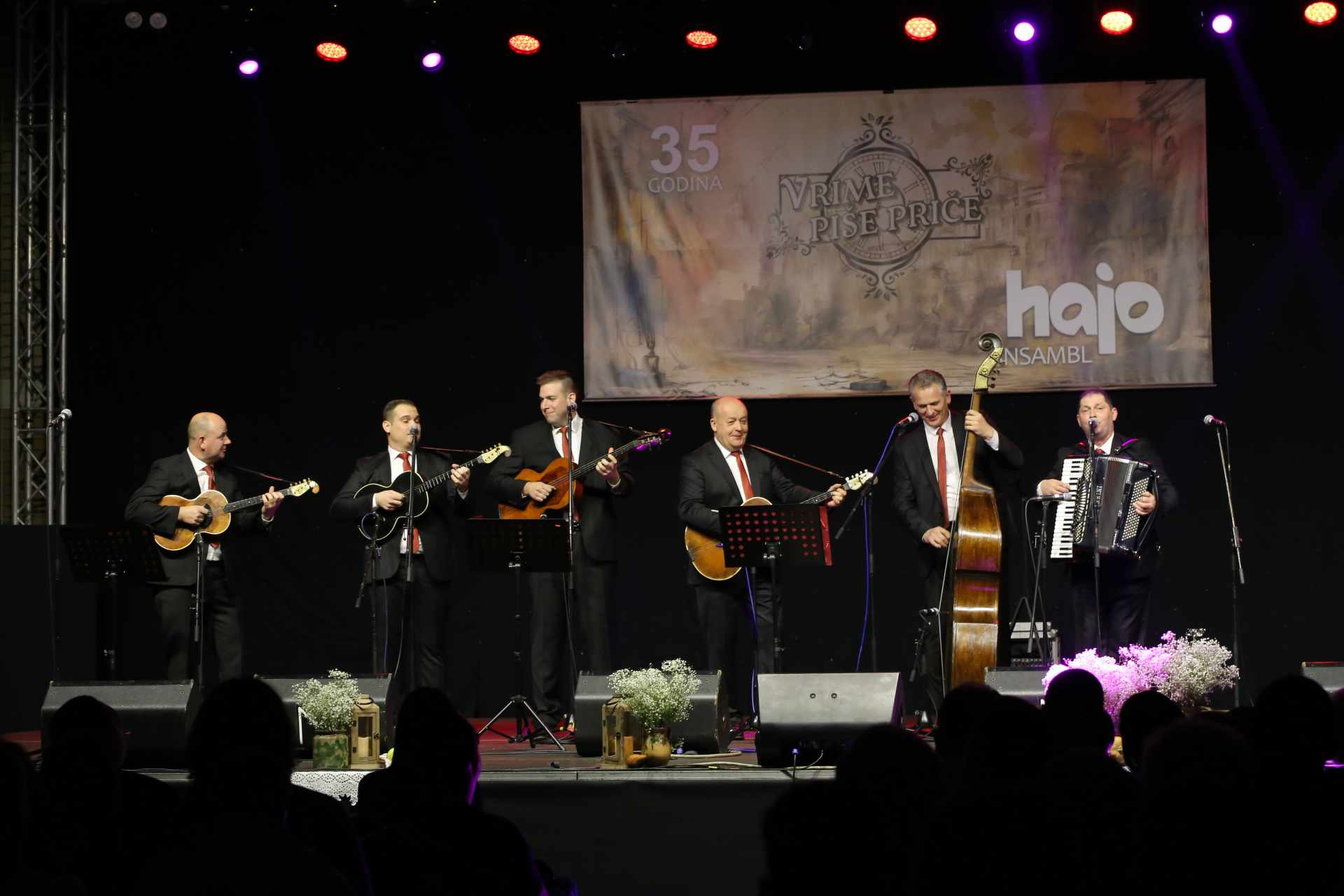 Hajoši su tijekom dvosatnog programa svojim pjesmama s dosadašnja tri albuma, od kojih je treći Vrime piše priče promoviran ovom prigodom, a autor većine pjesama je član ansambla Tomislav Vukov, vratili publiku u prošlost tj. u nika lipa stara vrimena kada su se predanije i s puno više ljubavi i poštovanja prakticirali običaji bunjevačkih Hrvata.