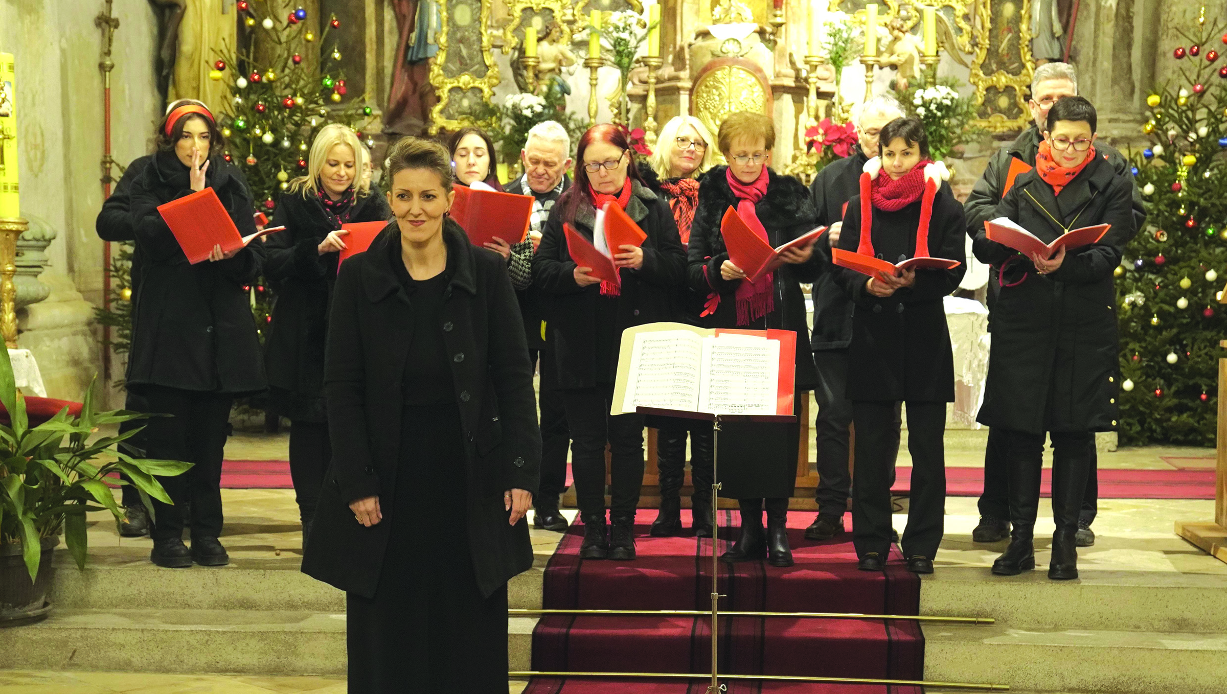 Na koncertu je nastupilo sedam zborova, koji su među okupljene posjetitelje pronijeli duh Božića. Koncert je otvorio združeni mješoviti zbor župa: sv. Josip iz Čerevića, sv. Barbare iz Beočina i zbor župe Našašća sv. Križa iz Srijemske Kamenice pod vodstvom vlč. Luke Ivakovića. Potom su nastupili Mješoviti zbor župe Uzvišenja sv. Križa iz Rume, pod dirigentskom palicom Katarine Atanacković, Mješoviti zbor župe Presvetog Trojstva iz Surčina pod vodstvom Zoje Satmari, Mješoviti zbor sv. Katarine iz Sota, čije su voditeljice Tijana Franjo i Slavica Kulačanin. Slijedio je Mješoviti zbor župa Srijemski Karlovci i Petrovaradin 3 pod vodstvom dirigentice Vlaste Malešević, Mješoviti zbor sv. Cecilija župe sv. Dimitrija, đakona i mučenika iz Srijemske Mitrovice koji vodi s. Marija Jelena Damjanović i kao posljednji nastupio je Mješoviti zbor sv. Cecilija župe Uznesenja Blažene Djevice Marije iz Zemuna pod vodstvom Nine Fuštar.