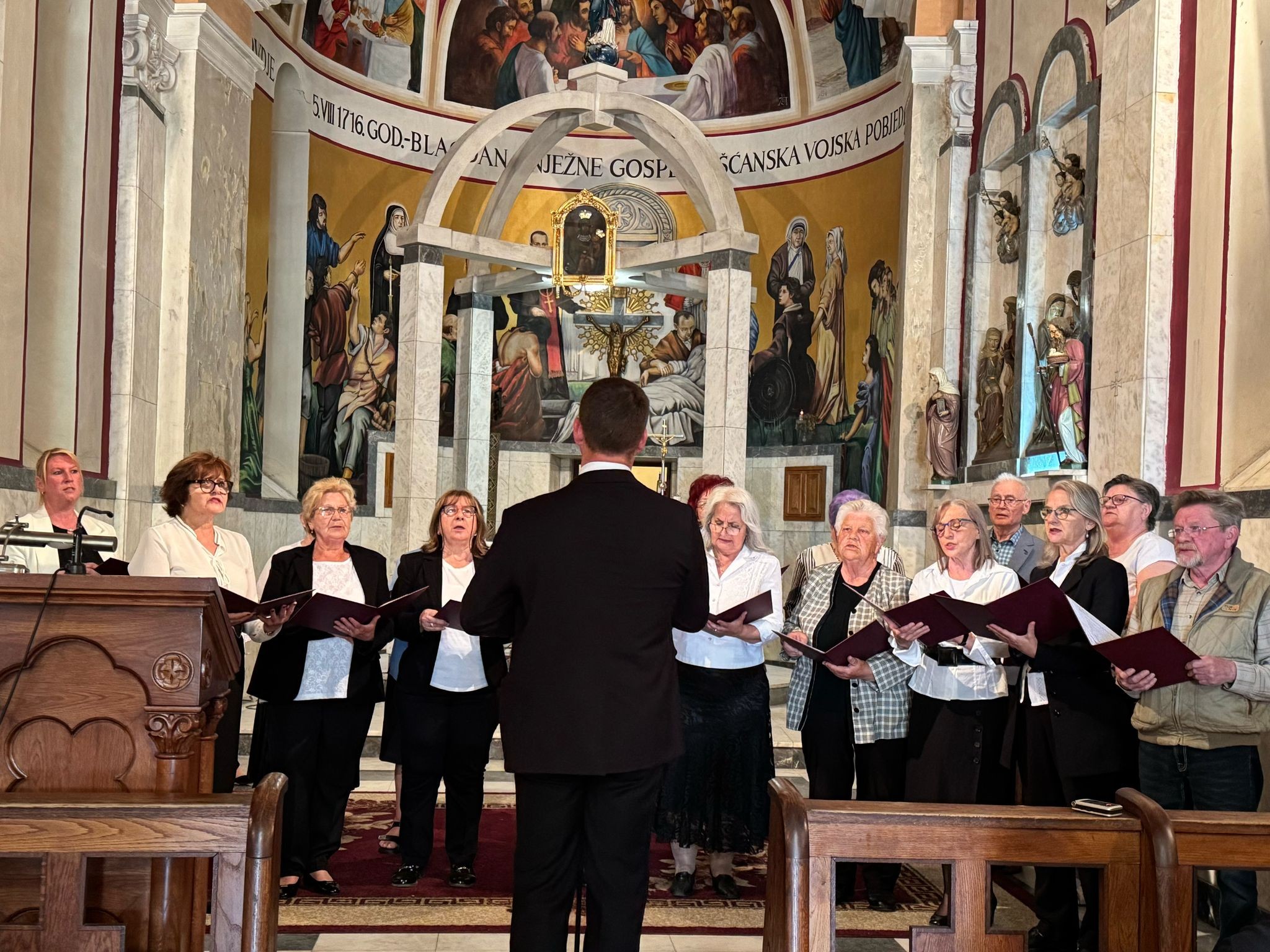 Svečani koncert koji je okupio župne zborove Srijemske biskupije i ispunio svetište molitvom, pjesmom i zajedništvom, održan je 31. svibnja u svetištu Gospe Snježne na Tekijama u Petrovaradinu. Zborovi su izveli bogat i raznolik repertoar posvećen Blaženoj Djevici Mariji. Nastupili su zborovi iz župe Presvetog Trojstva iz Srijemskih Karlovaca, župe Uzvišenja Svetoga Križa iz Rume, župe svetog Dimitrija, đakona i mučenika iz Srijemske Mitrovice, te združeni zbor župa sv. Josipa iz Čerevića, sv. Barbare iz Beočina i Našašća Svetog Križa iz Srijemske Kamenice. Nastupio je i zbor župe Uzvišenja Svetoga Križa iz Petrovaradina, kao i zbor župe Uznesenja Blažene Djevice Marije iz Zemuna.