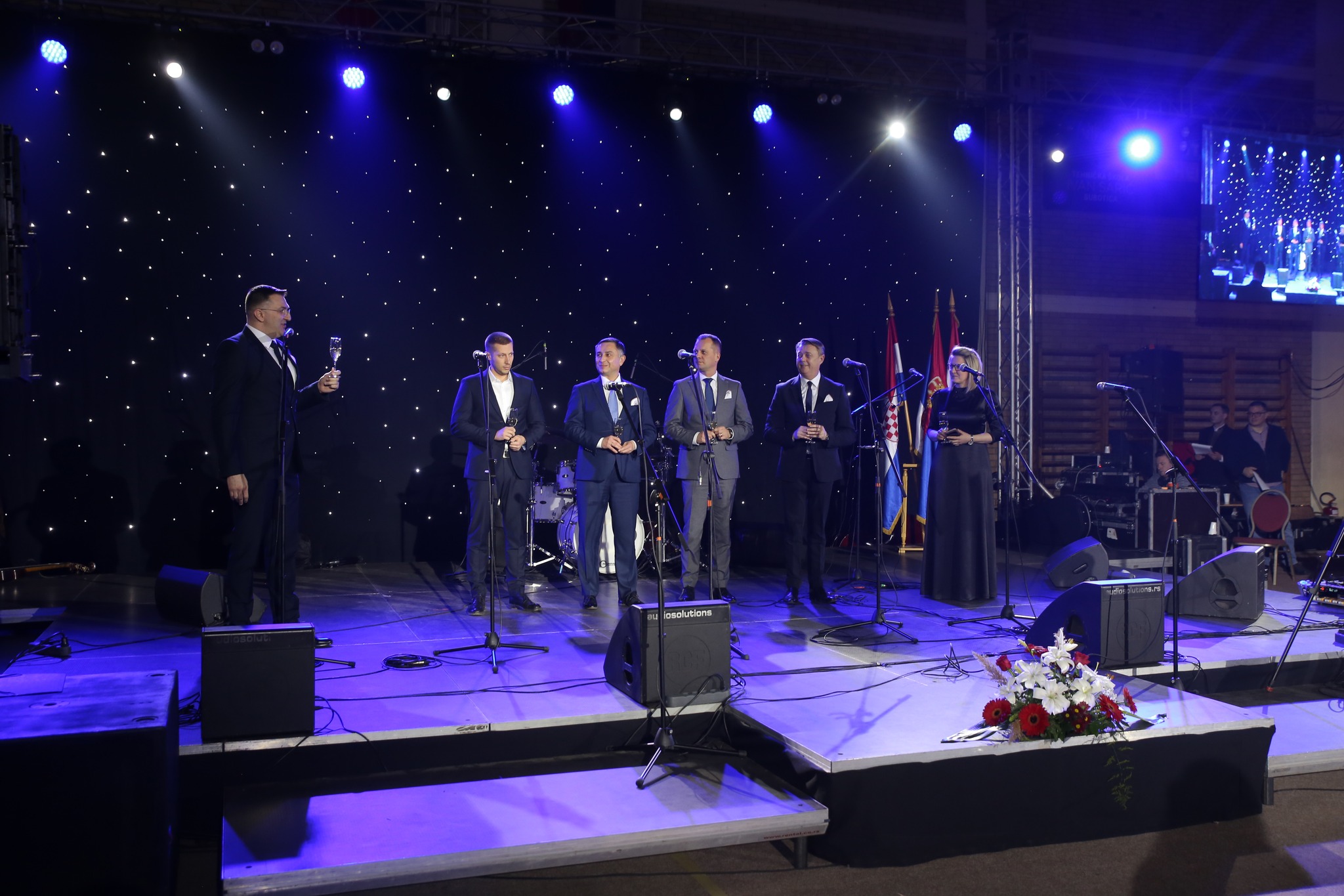 U svom obraćanju predsjednik Organizacijskog odbora Velikog prela Denis Lipozenčić pozdravio je sve nazočne i pozvao na binu uzvanike kako bi skupa održali zdravicu. Među uzvanicima koji su se obratili bili su župan Virovitičko-podravske županije Igor Andrović, saborski zastupnik i izaslanik predsjednika Sabora Gordana Jandrokovića Goran Ivanović Lac, predsjednica Hrvatskog nacionalnog vijeća Jasna Vojnić, predsjednik Mladeži DSHV-a Marin Piuković i predstavnik Grada Subotice Srđan Samardžić. Prvi se obratio Marin Piuković riječima: