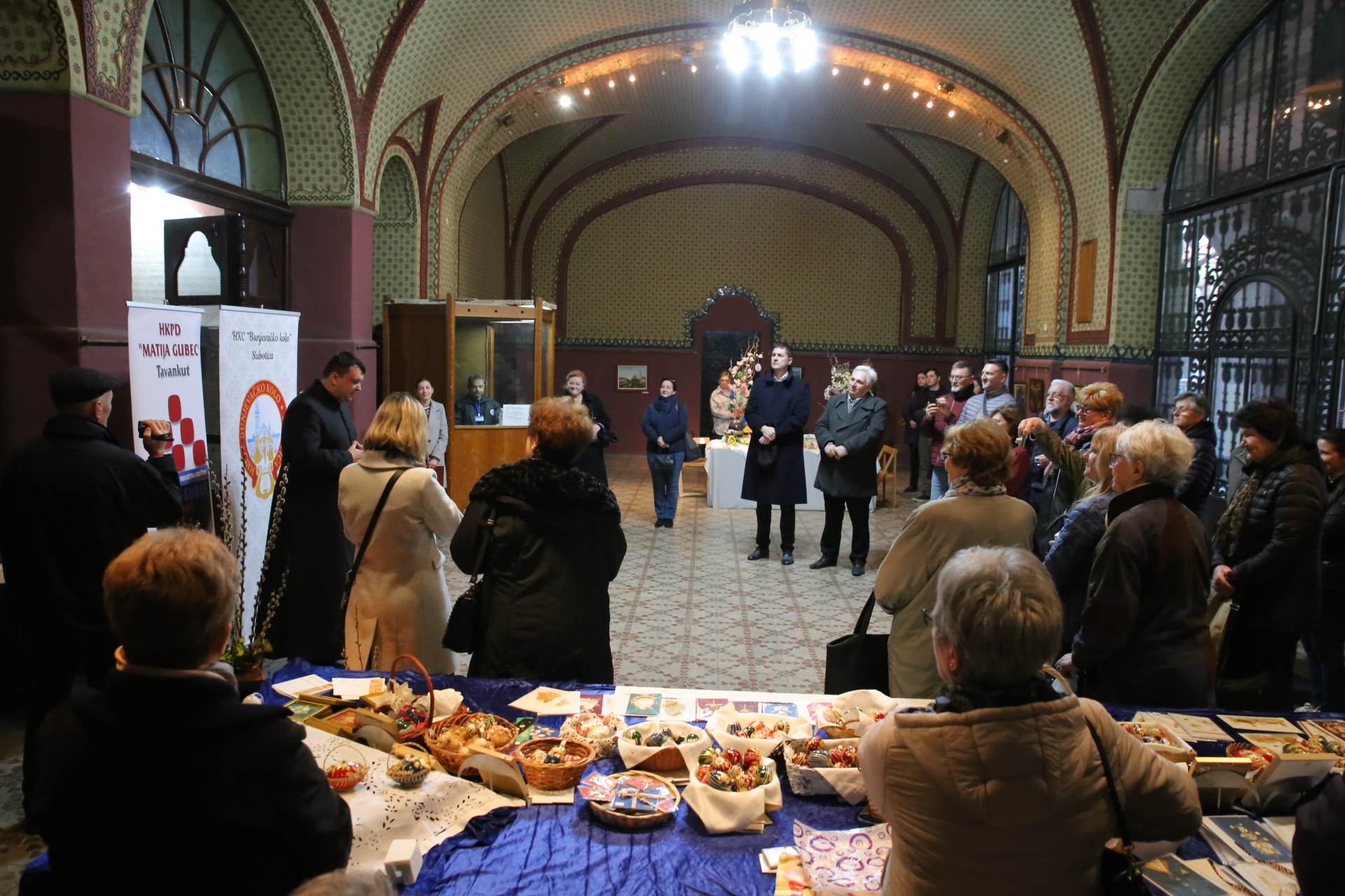 Uskrsna izložba članica slamarskog odjela HKPD-a Matija Gubec iz Tavankuta i članica likovnog odjela HKC-a Bunjevačko kolo iz Subotice otvorena je u ponedjeljak, 3. travnja 2023. godine, u vestibilu subotičke Gradske kuće.