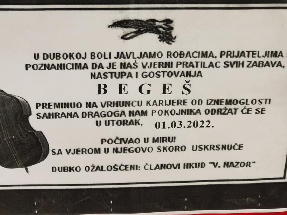 Oplakivali su tog pokojnika svi odreda, jer nisu tamburaši isto bez njega; nisu svatovi tako veseli dok se ne čuje i on, nije ni tuga uz čašicu ista kada nema njega. I ma koliko žalost bila velika, pokojnika treba sahraniti.