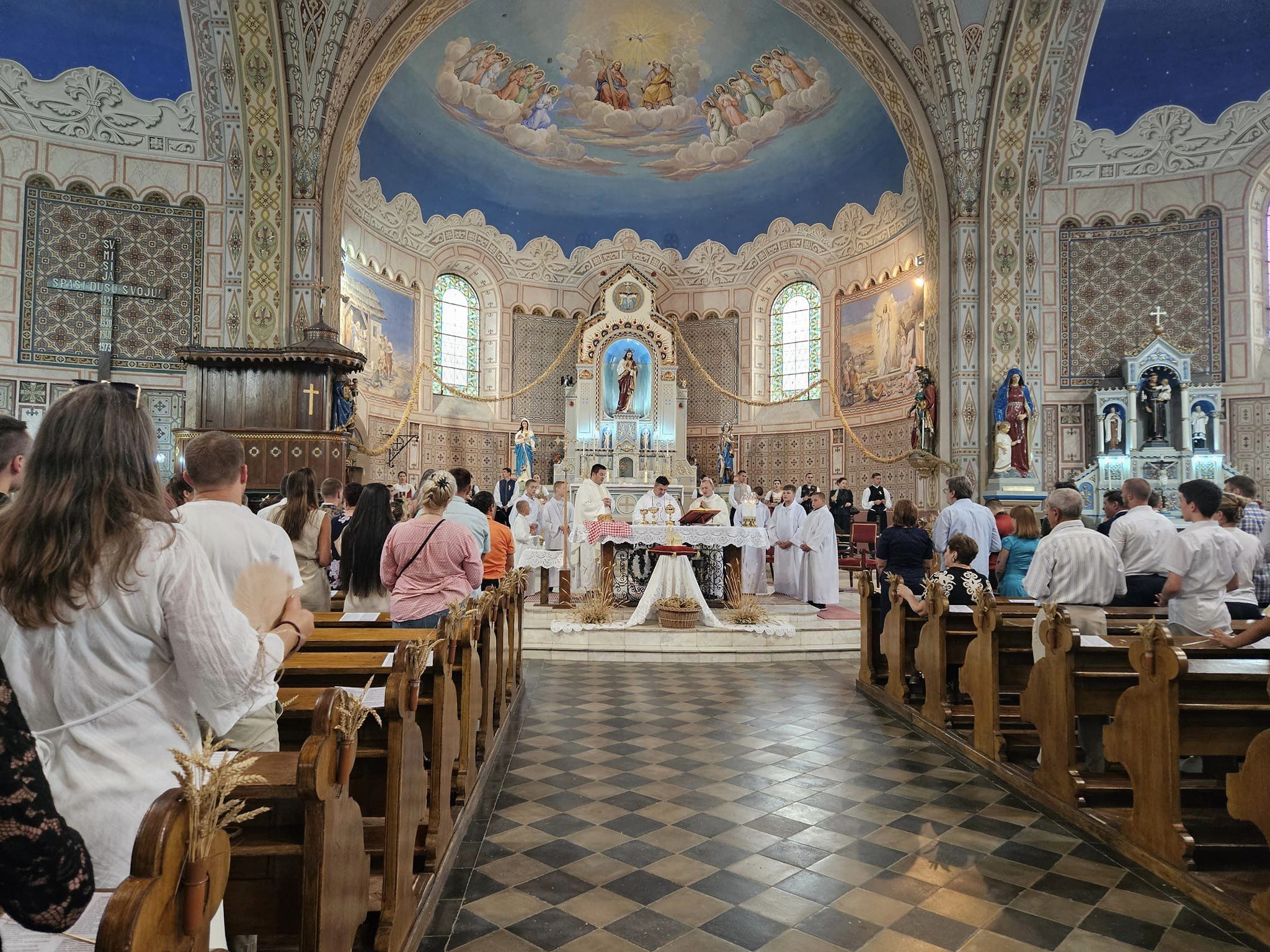 Vlč. Marinko Stantić podsjetio je kako su bandaš i bandašica izabrani u ime cijele župe zahvaliti Bogu za plodove žita: „Biti izabran da u ime svih Bogu kažete hvala za kruh naš svagdašnji, nije samo čast, nego i djelo koje zaslužuje da Bogu bude ugodno. S vama su risari i risaruše koji su po onoj drevnoj tradiciji, zajedno s vama bili u žetvi, odnosno ubirali plodove. Htio bih vam reći hvala što ste bili dostojni da upravo vas župnik izabere jer je u vama prepoznao vjeru. Hvala i vašim roditeljima što su vas kršćanski odgojili, usmjerili u tom pravcu i što vas danas možemo vidjeti na oltaru“, kaže vlč. Stantić.