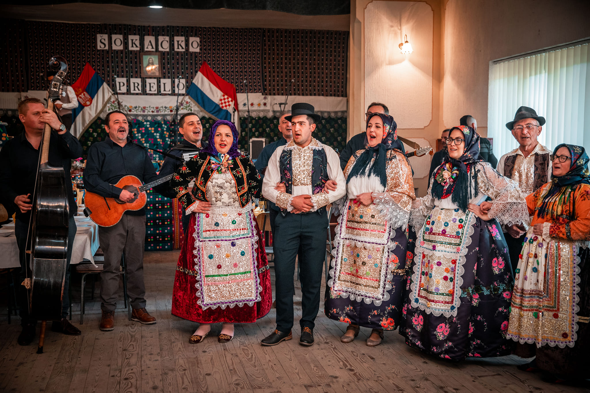 Prvo za glavni astal smjestiti goste sa strane, a bilo ih je iz Veleposlanstva Hrvatske, Ministarstva, Pokrajinske vlade, ZKVH-a, Grada Sombora, Dekanata Sombor… Dužnosnici jesu važni, jer nikada se ne zna kada mogu pomoći, ali važni su i oni domaći, pa se predsjednik Kranjčevića Milorad Miki Stojnić trudi pozdraviti sve, da mu sutra „njegovi“ ne prigovore kako samo gleda u VIP goste, a za njih i ne mari. A vuku ga na sve strane; pitaju gdje tko sjedi, kada će početi program, stoji li dobro nošnja… Uz sve to i novinari bi nešto pitali, a Miki to najmanje voli. Ne voli ni ona službena obraćanja u ulozi predsjednika udruge, pa se i ovoga puta obratio tek s nekoliko riječi, pozdravio goste, neke je i zaboravio i najavio još jedno Šokačko prelo. A čast otvoriti ga imali su članovi Kranjčevića, za ovu prigodu obučeni u svečanu nošnju, a prvo što su zapjevali bilo je naravno Naš je Bereg selo u ravnice, u njem žive Šokci i Šokice…Uz pratnju Tamburaškog sastava Panonika. Iskusni su to glazbenici, s tisućama nastupa iza sebe, ali jednom od njih ipak nije lako. Priznaje to Zlatko Gorjanac i javno, u mikrofon. Kaže, ovdje među svojim Berešcima i poslije toliko nastupa ima malo treme. Vjerujte na riječ nije se to uopće čulo, jer uigrani somborsko-bereški tamburaši svoj posao odradili bez pogreške.
