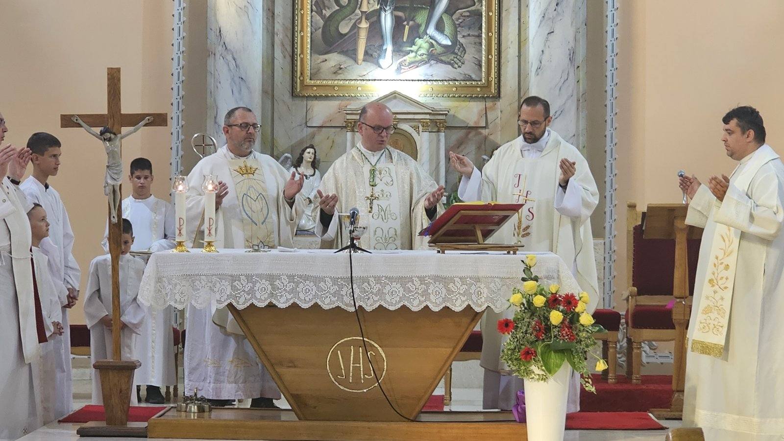 Zavjetno-zavičajni dan započet je svečanim misnim slavljem koje je predvodio biskup Srijemske biskupije mons. Fabijan Svalina.