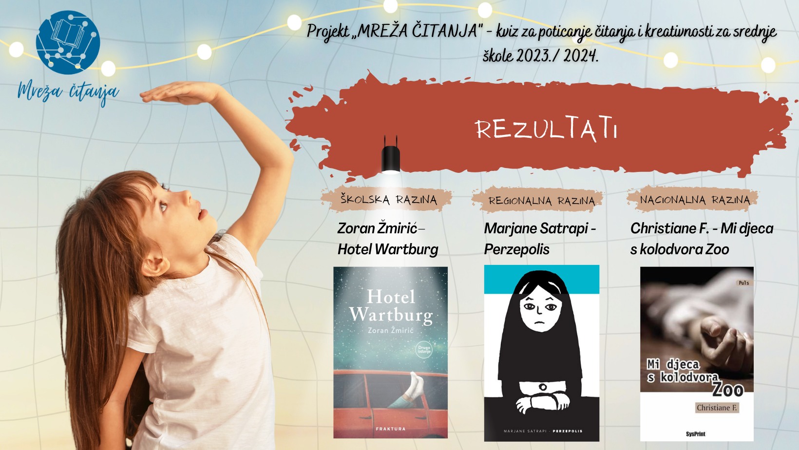 U mreži odrastanja: izazovi i prepreke ovogodišnja je tema nove sezone projekta za poticanje čitanja i kreativnosti za srednje škole Mreža čitanja koji diljem Hrvatske pa i u Subotici organizira Hrvatska mreža školskih knjižničara. Provedbu ovog hvalevrijednog projekta u subotičkim srednjim školama gdje se nastava odvija na hrvatskom jeziku, Gimnaziji Svetozar Marković, Politehničkoj školi i Medicinskoj srednjoj školi preuzelo je Hrvatsko nacionalno vijeće u suorganizaciji s NIU Hrvatska riječ. Do sada se prijavilo više od četrdeset srednjoškolaca koji će u svoje slobodno vrijeme čitati ponuđene knjige: Zoran Žmirić – Hotel Wartburg (školska razina); Marjane Satrapi – Perzepolis (regionalna razina) i Christiane F. – Mi djeca s kolodvora Zoo (nacionalna razina).