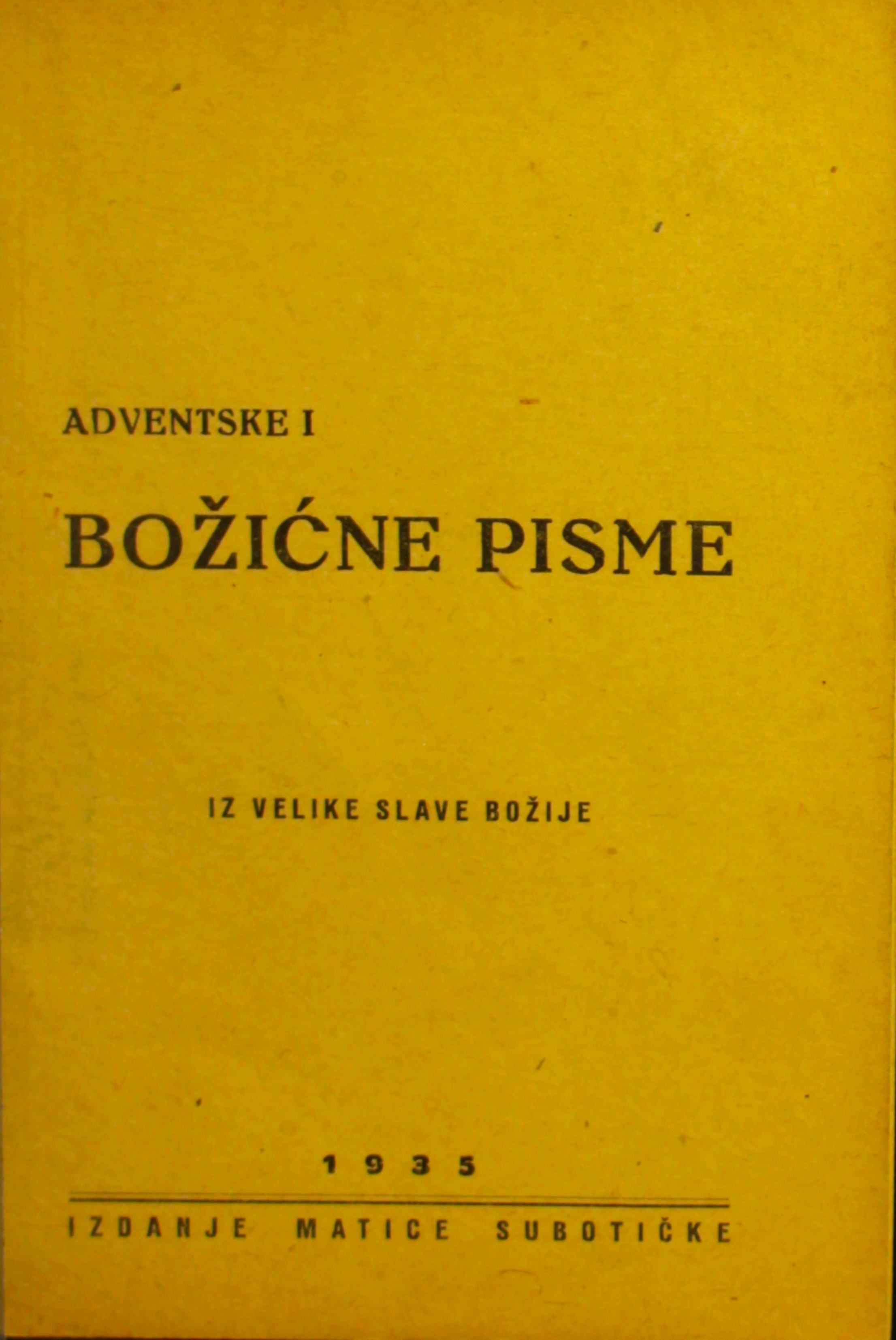Naslov: Adventske i božićne pisme iz Velike slave Božije / Dozvolom Bačke Duhovne oblasti u Subotici