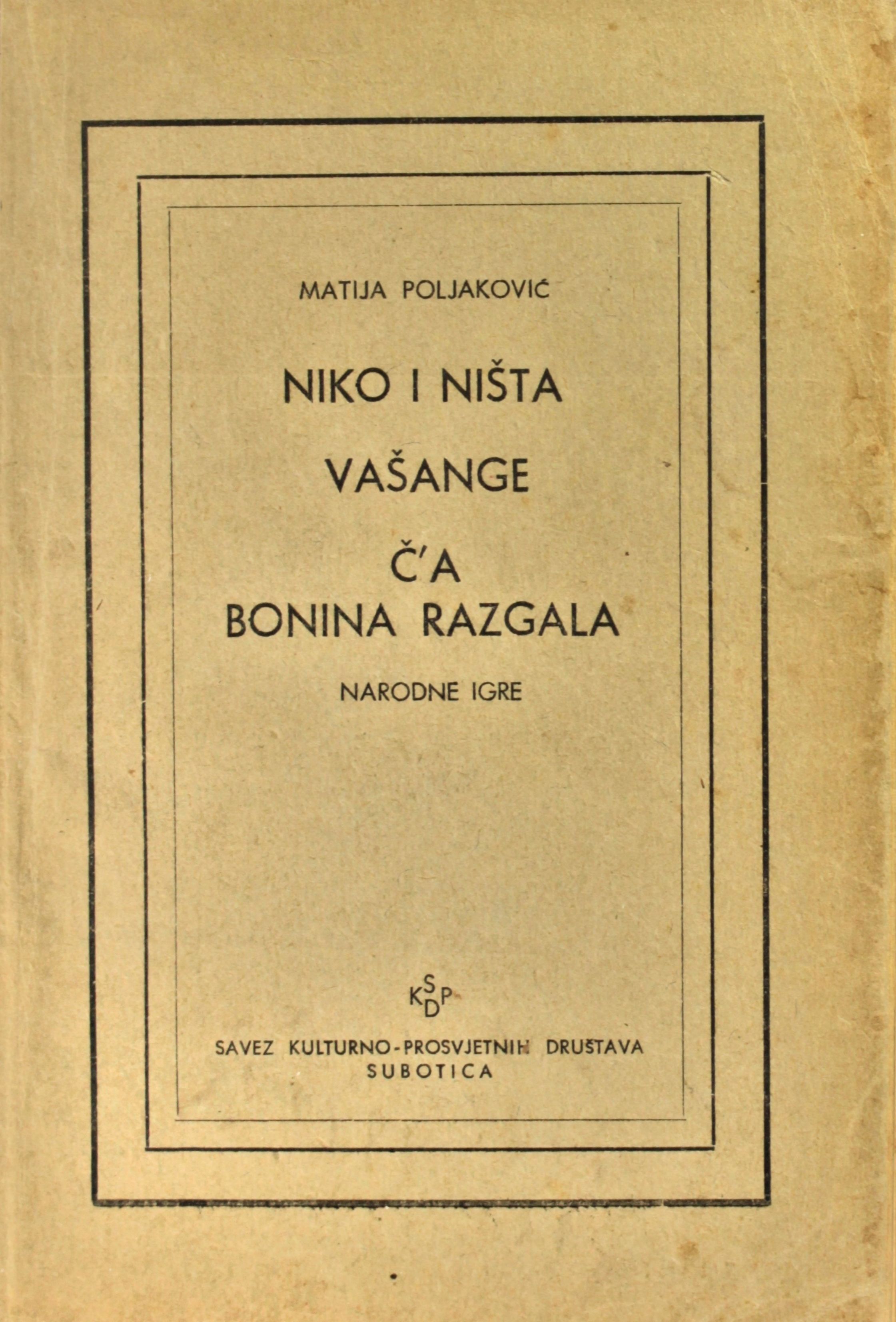 Impresum: Subotica : Savez kulturno-prosvjetnih društava, [1953] (Subotica : Minerva)
