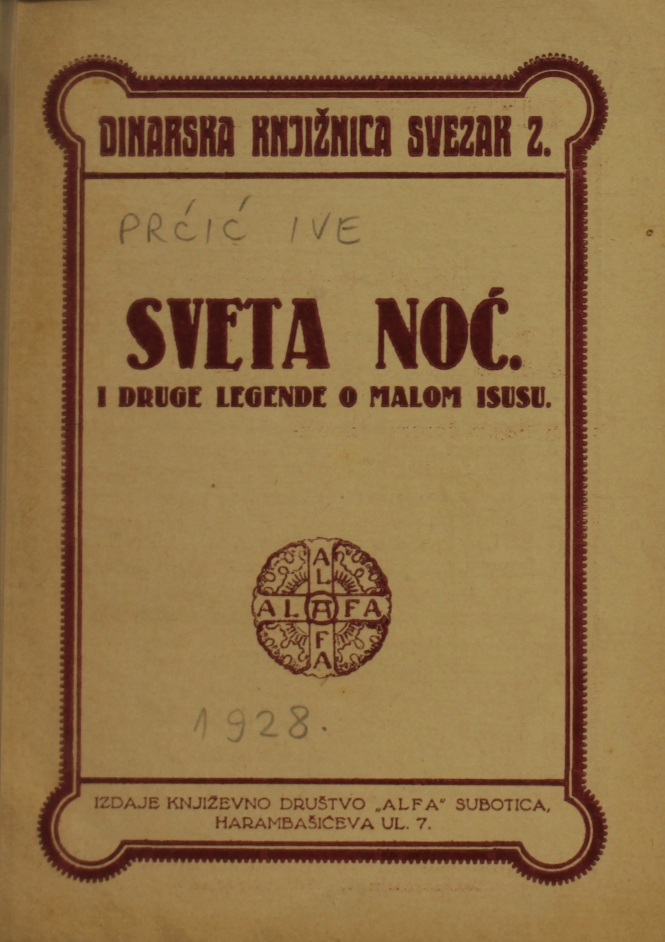 Impresum: Subotica : Alfa, 1927 (Subotica : Tiskara Josipa Horvata)