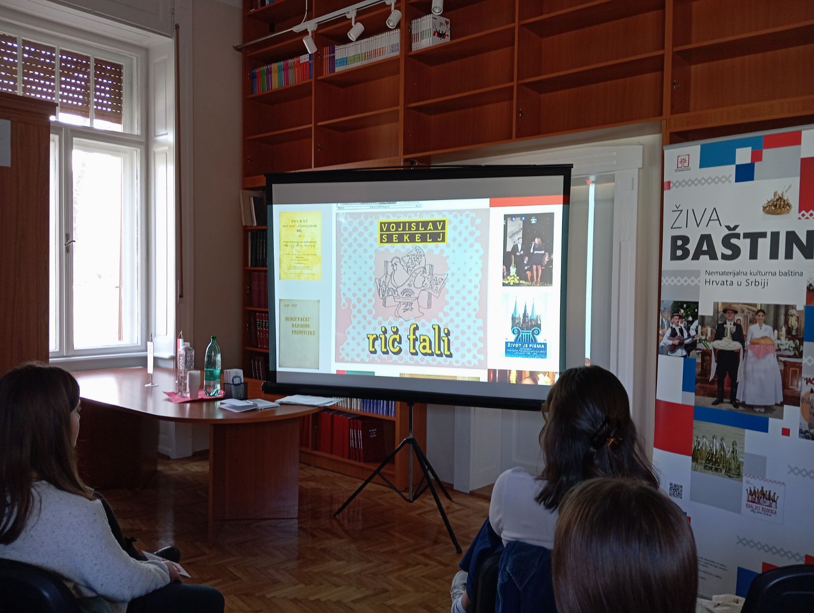 Učenici su potom pogledali kratki film Živa baština - Nematerijalna kulturna baština Hrvata u Srbiji koji je bio uvod za kviz na temu elemenata iz filma, a kojim je koordinirao stručni suradnik ZKVH-a Branimir Kopilović.