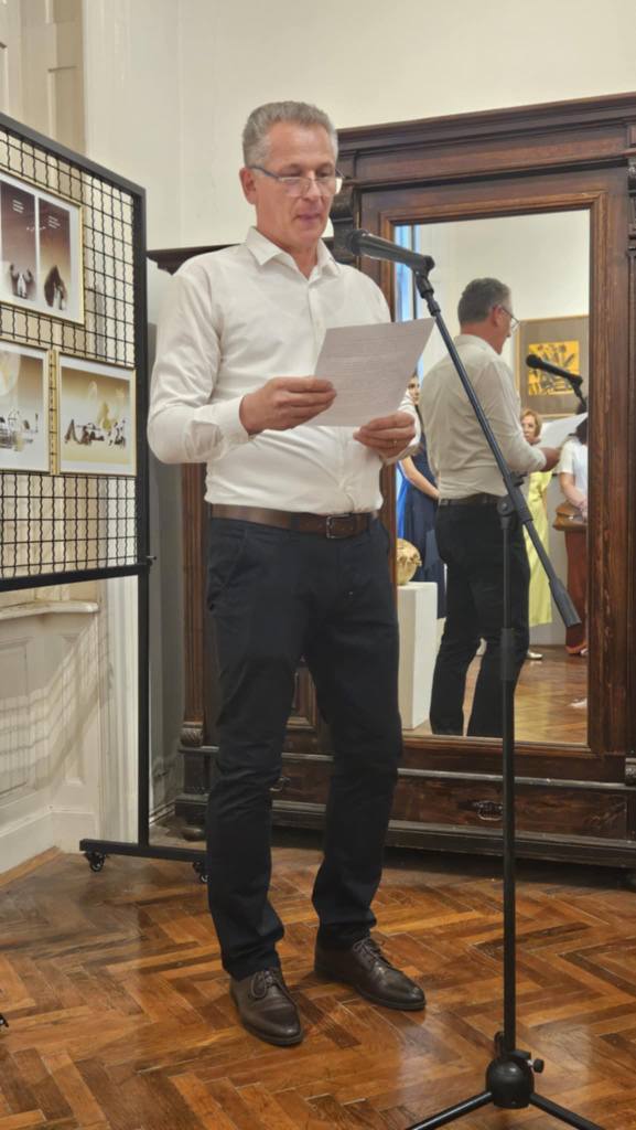 U ime organizatora – KD-a Ivan Antunović, obratio se njegov predsjednik preč. Josip Štefković: „Ivan Balažević je umjetnik koji je kroz svoje stvaralaštvo na jedinstven način spojio vjeru, tradiciju i umjetnost. U vremenu kada često zaboravljamo vrijednosti jednostavnosti, posvećenosti i tihe službe ljepoti, njegov nas rad podsjeća da umjetnost može i mora biti u službi čovjeka, i da ono svakodnevno, funkcionalno, može postati nositelj nečega uzvišenog. Njegova primijenjena umjetnost nije puko ukrašavanje predmeta, to je duboko promišljen čin davanja smisla svakodnevici. Razgledajući izložbu uočit ćete kako se rad Ivana Balaževića, te UBH-a Dužijanca i KD-a Ivan Antunović već desetljećima isprepliću. Obogatio je i oplemenio svojim umjetničkim izričajem mnoga naša izdanja i događaje. Neka mu i ova izložba bude svojevrstan vid zahvalnosti i priznanja za sve što je za nas učinio i što je svoj umjetnički talent nesebično stavio u službu zajednice“.