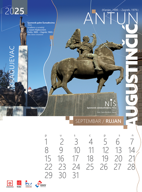 Zajednički kalendar manjinskih hrvatskih institucija u Srbiji za 2025. godinu prikazuje odabrana djela hrvatskih kipara u Srbiji koja pripadaju segmentu javne spomeničke baštine. Mjesec rujan predstavljaju radovi Antuna Augustinčića – Spomenik palim Šumadincima u Kragujevcu i Spomenik osloboditeljima Niša.
