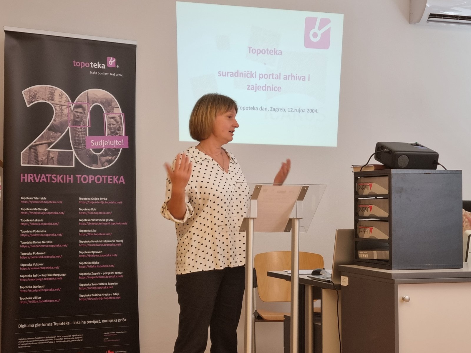 U programu Topoteka dana su voditelji ovih zbirki iz Hrvatske i susjednih država podijelili i javno predstavili priče svojih platformi, a ujedno su predstavljeni i različiti projekti i inicijative povezani s ovom platformom koji pokazuju mogućnosti digitalnih alata u oživljavanju povijesnih izvora i kulturne baštine.